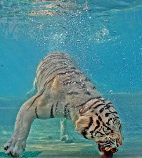 Su altında beslenen vahşi kaplan