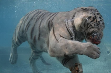 Su altında beslenen vahşi kaplan