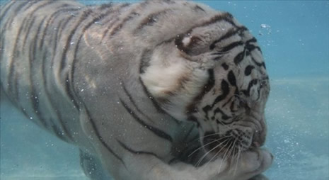 Su altında beslenen vahşi kaplan