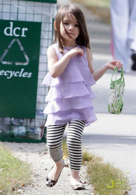 Katie Holmes ile Tom Cruise'un 5 yaşındaki kızı Suri, bir kez daha büyümüş de küçülmüş bir tarzla kameralara yakalandı.