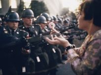 17 yaşındaki Jan Rose Kasmir 1967 yılında Pentagon savaş karşıtı protestoları sırasında askerlere çiçek sunuyor.
