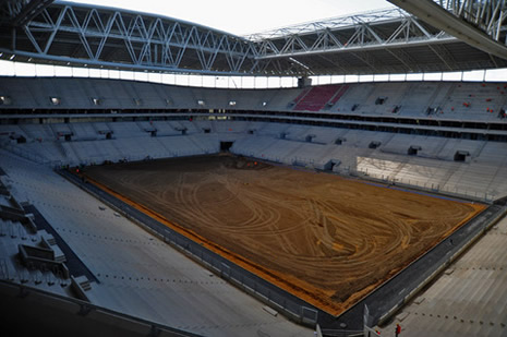 Galatasaray'ın ligin 2. yarısından itibaren maçlarını oynayacağı yeni stadı Türk Telekom Arena'da çalışmalar devam ediyor.