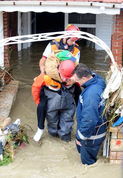 Arabalar denizde yüzüyor. Kadınlar itfaiye aracına tırmanıyor. Helikopter ağaçtan insan topluyor. Yolun orta yeri yok;