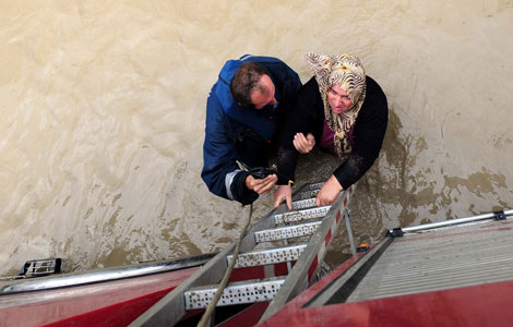 Arabalar denizde yüzüyor. Kadınlar itfaiye aracına tırmanıyor. Helikopter ağaçtan insan topluyor. Yolun orta yeri yok;