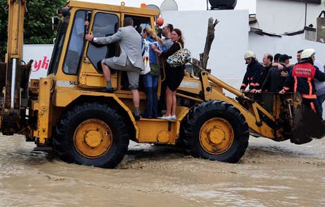 Arabalar denizde yüzüyor. Kadınlar itfaiye aracına tırmanıyor. Helikopter ağaçtan insan topluyor. Yolun orta yeri yok;