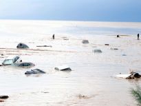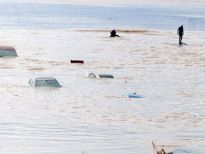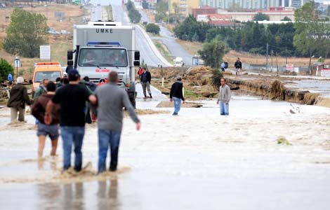 Arabalar denizde yüzüyor. Kadınlar itfaiye aracına tırmanıyor. Helikopter ağaçtan insan topluyor. Yolun orta yeri yok;
