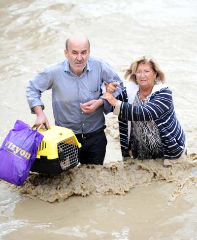Arabalar denizde yüzüyor. Kadınlar itfaiye aracına tırmanıyor. Helikopter ağaçtan insan topluyor. Yolun orta yeri yok;