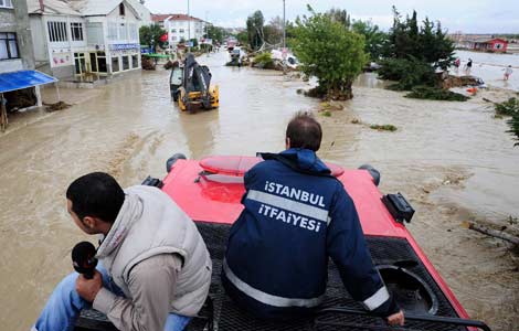 Arabalar denizde yüzüyor. Kadınlar itfaiye aracına tırmanıyor. Helikopter ağaçtan insan topluyor. Yolun orta yeri yok;
