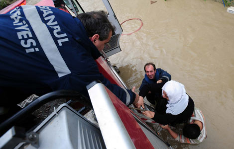 Arabalar denizde yüzüyor. Kadınlar itfaiye aracına tırmanıyor. Helikopter ağaçtan insan topluyor. Yolun orta yeri yok;