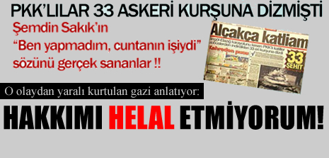 “Gece yarısına kadar birkaç kilometre yürüttüler. Benimle 35 askeri bir patika yola çıkarttılar. Teröristlere Şemdin Sakık komuta ediyordu. Hepimizi yan yana dizdiler. Sakık’ın emriyle 3 metreden bizi kurşuna dizdiler. Dizimdeki acıyla kendimi sol tarafa attığımı hatırlıyorum. Silah seslerinin ardından baktım. Arkadaşlarım cansız yatıyordu. İniltiler duydum. Yaralı olduğum halde kendimi gizledim. Sabah anayola çıkarak bir aracı durdurdum ve en yakındaki jandarma karakoluna sığındım, Ayrılan ikinci grupta bulunan 19 askerse 2 gün daha dağda teröristler tarafından tutuldu sonra serbest bırakıldı. O askerler de Şemdin Sakık’ı gördüklerini anlatabilir.”