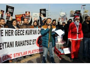 Genç STK'lar Platformu "Noele Hayır" konulu basın açıklaması düzenleyerek vatandaşa Kur-an'ı Kerim meali dağıttı.