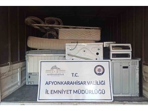 Afyonkarahisar'da girdikleri evlerden beyaz eşya, yatak yorgan, kahve makinesi ve perde dahi çalan biri kadın iki kişi polisi başarılı takibi ile yakalandı. Kamyonete yükledikleri çaldıkları eşyalarla yakalanan şahıslardan biri tutuklandı.