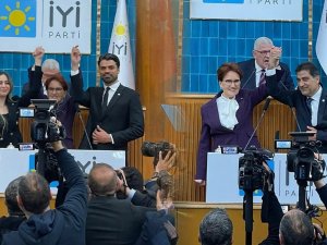 İYİ Parti Genel Başkanı Meral Akşener, Ünal Karaman ve Gökhan Zan'a İYİ Parti rozetini taktı.
