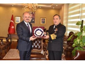 Güney Deniz Saha Komutanı Koramiral Hasan Uşaklıoğlu, bir dizi temas ve incelemelerde bulunmak üzere geldiği Mersin'de, Mersin Valisi Özdemir Çakacak'ı makamında ziyaret etti.