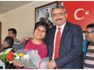 Nazilli Güzelköy Özel Eğitim Uygulama Merkezi ve İş Uygulama Merkezi Okulu Müdürü Emrullah Çolak, öğretmenler ve öğrencileri ile birlikte Nazilli Belediye Başkanı Haluk Alıcık'ı makamında ziyaret etti.
