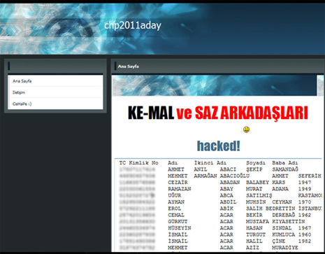 Hackerlar, "Önce Kendi Şifrene Sahip Çık" ve "Ke-mal ve saz arkadaşları" ifadeleri ile CHP'yi adeta ti'ye aldılar. CHPnin intranet sistemine giren hackerlar milletvekili aday adaylarının bütün bilgilerini çaldı!