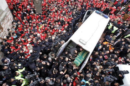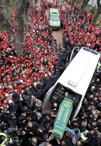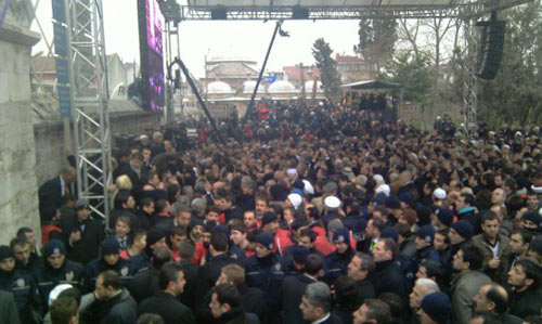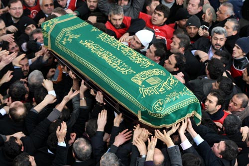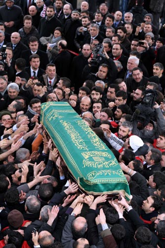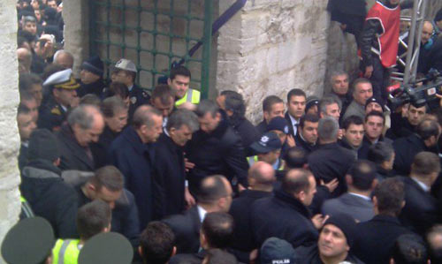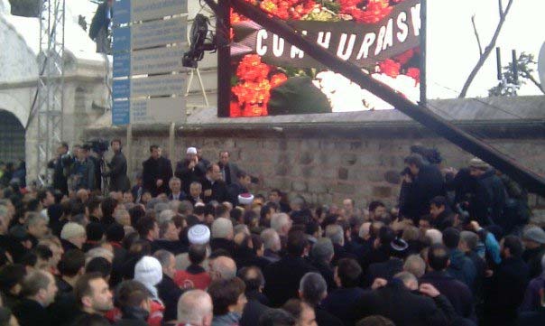 12:22-Cumhurbakanı Gül, Başbakan Erdoğan Fatih Camii'ne geldi. Cumhurbaşkanı Abdullah Gül de cenaze namazını kılmak için Fatih Camii'ne geldi. Cenazeye katılmak için Belçika ziyaretini erteleyen Başbakan Reçcep Tayyip Erdoğan camiye geldi.