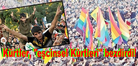 Kürtlerin kendilerine ayrımcılık yaptığını söyleyen güneydoğulu eşcinseller ilk kez Nevruz kutlamalarına katıldı. Gökkuşağı renklerindeki gay bayrağı açan grup Kürtlerdeki 'Bizden çıkmaz' anlayışından şikâyetçi.