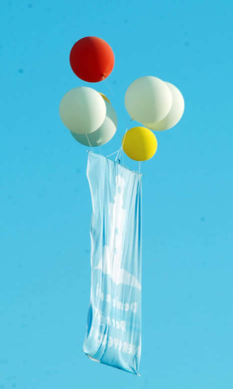 Patlayan balonun içerisinden çıkan 'Deniz Feneri' flaması herkesi şaşırttı.