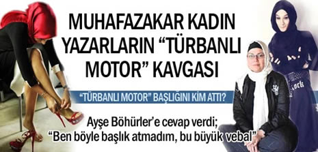 | Ayşe Böhürler, "türbanlı motor" başlığı konusunda hata yaptığını kabul ediyor. Gazeteciler.com'a gönderdiği cevapta "Yazarın bahsettiğim başlığı içeren içerikteki yazısını alıntılayan değil, yayınlayan sitedeki yazı başlığına daha dikkatli bakmalıydım" diyor. Ancak Böhürler, o başlık dışındaki yazısının tamamen arkasında. Diyor ki; "Küçük bir kelime farkı dışında anlamda değişen bir şey olmadığını yazıyı tekrar okuduğumda bir kez daha fark ettim. Muhtevanın yorumunu ben yapmadım, bu yazıyı alıntılayanlar yapmış. O türban sözünü başörtüsü olarak değiştirmiş olmam da kast edilen manayı etkilemiyor değiştirmiyor. Malum başörtüsü=türban zihnimize zorla kazındı. Mesele yazar değil, kadınlık üzerinden hakaret. Yoksa yazar hanımı şahsen ne tanırım ne de kendisine ilişkin olumlu olumsuz bir yargım vardır." |