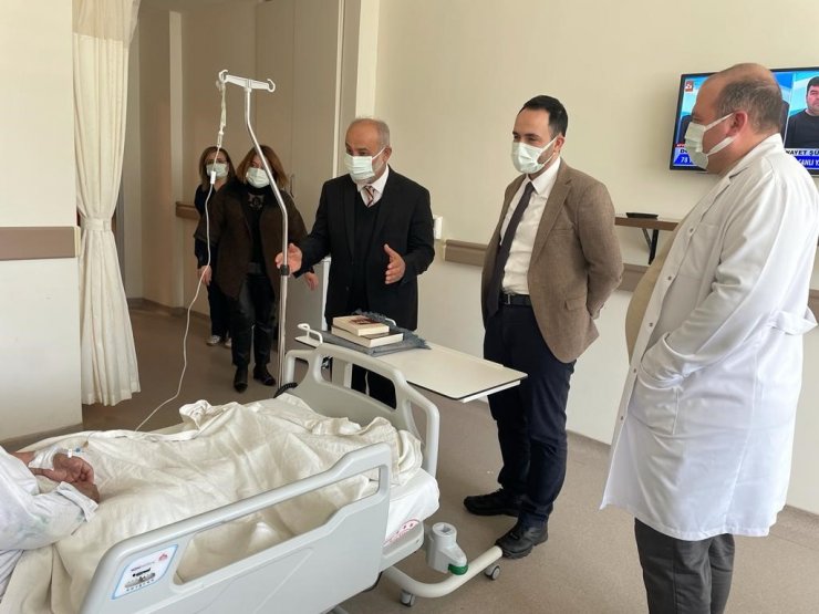 Giresun İl Müftülüğünce, Aksu Eğitim ve Araştırma Hastanesi'nde tedavi gören vatandaşlara "Geçmiş olsun" ziyaretinde bulunarak, Kur'an-ı Kerim, dua kitabı ve seccade hediye etti.