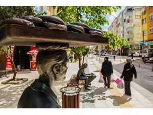 Yalova'da simitçi heykelinin tablasındaki demir simitler çalındı.