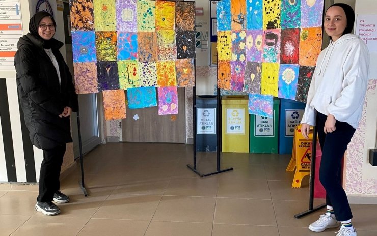 10. sınıf tarih dersi konularında geçen ebru sanatının özel alınan malzemelerden ve belli bir deneyimden sonra yapılabilen bir sanat olduğunu söyleyen Tarih Öğretmeni Raziye Kocalar," Bu nedenle öğrencilerimizin gündelik yaptığı resim çalışmalarının arasında yer almamaktadır. Yaparak yaşayarak öğrenme yöntemiyle işlenen ebru sanatı konusu, öğrencilerimiz için ilk deneyim ve tecrübe olmuştur. Bu yönüyle de takdir toplayan ebru sanatı etkinliği öğrencilerimiz tarafından büyük bir ilgi yapıldı. Yapılan etkinliğin ardından, öğrencilerimizin çalışmaları okul girişinde sergilendi" dedi.