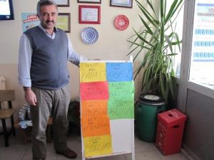 Kütahya'nın Hisarcık ilçesi Şehitler Ortaokulu koridorlara konulan yöre şivesi kelimeler ve anlamlarının bulunduğu panolar büyük ilgi görüyor.