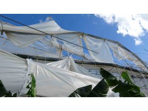 Manavgat'ta dün gece yağmurla birlikte etkili olan hortum, Yavrudoğan Mahallesinde Ahmet Tekelioğlu'na ait muz serasına zarar verdi. Hortum, 11 dönüm kapalı alan üzerinde bulunan muz serasının 5 dönümünün çatısının demir profil ve naylonunu yerle bir ederken çok sayıda ağacın yıkılmasına, üzerindeki ürünün telef olmasına neden oldu.