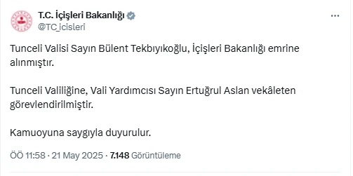 Tekbıyıkoğlu'nun, Tunceli'de 17 Mayıs'ta terör örgütü PKK'nın sözde iki yöneticisi için düzenlenen bir anma törenine Ankara'dan gelen bir telefonla izin verildiği iddiasıyla Merkez'e çekilmek ve Mülkiye Başmüfettişi olarak görevlendirilmek için İçişleri Bakanlığı'na dilekçe verdiği öne sürülmüştü. Konuya dair İçişleri Bakanlığı'ndan açıklama geldi. "Tunceli Valisi Sayın Bülent Tekbıyıkoğlu, İçişleri Bakanlığı emrine alınmıştır. Tunceli Valiliğine, Vali Yardımcısı Sayın Ertuğrul Aslan vekâleten görevlendirilmiştir. Kamuoyuna saygıyla duyurulur".