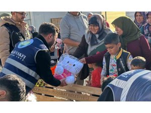 İhlas Koleji öğrencilerinin gönderdiği oyuncaklar, deprem bölgesi Kahramanmaraş'ta çadır kentte kalan çocuklara ulaştırıldı. Oyuncakları alan çocukların yüzleri güldü.