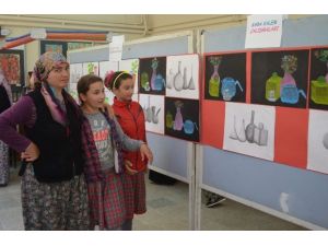 Sergide 220 adet eserin yer aldığını belirten resim öğretmeni, Evrim Ataman da, "Öğrencilerimizin yapmış oldukları eserler Anadolu insanını ifade etmektedir. Kendi kültürlerini ifade etmektir. Bunları tablolara ve kağıtlara aktardıkları şekilde biz de halkımız ile paylaşmak istedik. Tamamen öğrencilerimizin kendi el emekleri neticesinde gerçekleştirilmiştir. Zamanımız kısıtlıydı, o yüzden sene başından itibaren yapmış olduğumuz çalışmalar karma teknik, kara kalem, akrilik, sulu boya ve dediğimiz gibi imkanlarımız da kısıtlıydı çok fazla çeşitli teknikler kullanamadık. Elimizden gelen imkanlar dahilinde güzel bir şeyler sergilemeye çalıştık." ifadelerini kullandı.