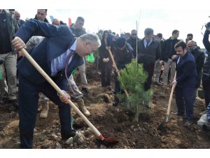 Toplam 2 bin fidan, işlemesi yapılan 15 dekarlık alanda toprakla buluştu