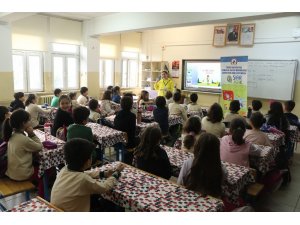 İsrafın önlenmesi, atık yönetimi dahilinde doğal kaynakların verimli kullanılması, atık oluşumunun minimize edilmesi gibi başlıkların ele alındığı eğitimlerde müdürlük personelleri slaytlar eşliğinde minik öğrencilere bilgiler aktardı.