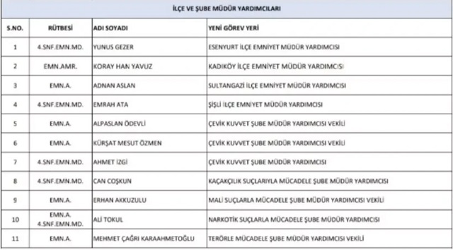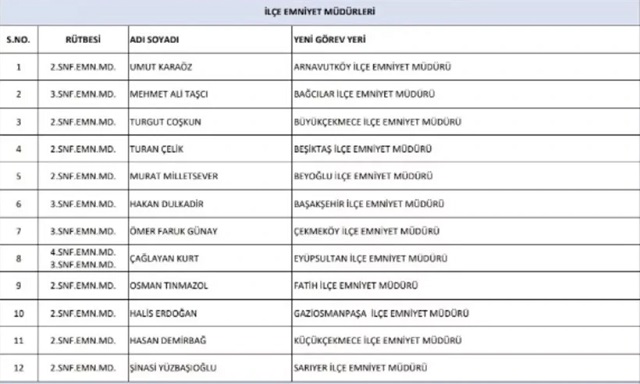 İstanbul Valiliği, 2025 yılı yaz dönemi kapsamında İl Emniyet Müdürlüğü kadrosunda görev değişikliklerine gitti. Yapılan atamalarla birlikte 9 il emniyet müdür yardımcısı, 12 ilçe emniyet müdürü, 17 şube müdürü, 4 ilçe emniyet müdür yardımcısı ve 7 şube müdür yardımcısının yeni görev yerleri belirlendi.