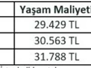 Yaşam maliyeti ocak ayında 29 bin 429 TL, şubat ayında ise 30 bin 563 TL seviyesindeydi.