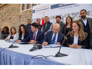İkinci Yüzyılın İktisat Kongresi çerçevesindeki işçi buluşması ile eş zamanlı düzenlenen törende protokolü; İzmir Büyükşehir Belediye Başkanı Tunç Soyer ve İş Bankası Ege Bölge Temsilcileri imzaladı. Protokole göre, İzmir Büyükşehir Belediyesinin İZENERJİ şirketinde çalışan toplam 11 bin personeline kişi başı 24 bin TL promosyon ödemesi yapılacak.