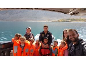 Van merkez Edremit Jandarma Komutanlığı ekipleri, İnköy ve Altınsaç mahallerinde okuyan öğrencileri ziyaret edip Van Gölü'nde gezdirdi.