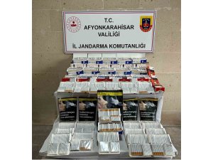 Operasyon, İhsaniye ilçesine bağlı Gazlıgöl beldesinde yapıldı. Edinilen bilgilere göre, beldede ticari faaliyet yürüten Y.K., isimli şahsın iş yerinde kaçak sigara ve tütün satışı yaparak kendisine haksız kazanç sağladığı bilgisi alınan jandarma ekipleri harekete geçti. Şahsın iş yerine baskın düzenleyen ekipler yaptıkları aramada 16 bin 400 adet makarona doldurulmuş sigara, 8 bin 600 adet boş makaron ve bin 800 gram tütün ele geçirildi. Olayın ardından şahıs hakkında işlem yapıldığı bildirildi.