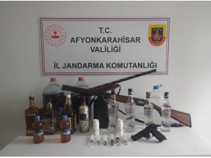 Olay, Sultandağı ilçesinde meydana geldi. Afyonkarahisar İl Jandarma Komutanlığı'na bağlı ekipler ilçede ikamet eden C.K., H.E., M.E. ve U.T.G., isimli şahısların sahte, kaçak alkol ticareti yaptığını tespit etti. Ardından şahısların adreslerine baskın düzenleyen ekipler 25 litre viski, 10 litre rakı, 100 gram alkol üretiminde kullanılan alkol kiti, 2 adet av tüfeği ve 1 adet kurusıkı tabanca ele geçirdi. Operasyonda gözaltına alınan şahıslara toplamda 10 bin 981 TL idari para cezası kesildi.
