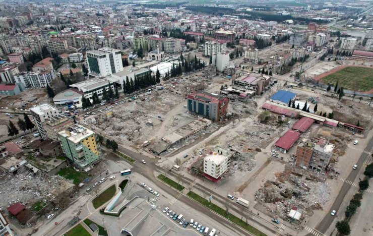 Türkiye'yi yasa boğan Kahramanmaraş merkezli iki büyük depremin ardından hasarlı binaların yıkımı ve enkaz kaldırma çalışmaları hızla devam ediyor. Depremlerde Kahramanmaraş merkezde binlerce bina enkaz haline döndü, yada ağır hasar aldı. İlk 10 gün yoğun olarak yapılan arama kurtarma çalışmalarının ardından kent merkezinden çöken binaların enkazları kaldırılmaya başlandı. Bugün 41'inci güne girilirken en kaz kaldırma ve ağır hasarlı binaların yıkımları aralıksız devam etti. Şehirdeki son durum dron ile havadan görüntülendi.