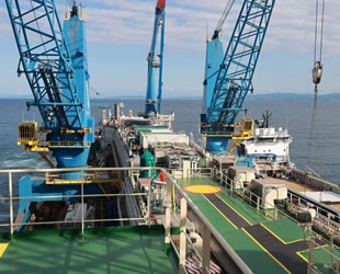 Karadeniz gazını Filyos'a taşıyacak boru serim işlemini gerçekleştiren Castorone Gemisi'ne giden Dönmez, faaliyetler hakkında bilgi aldı.