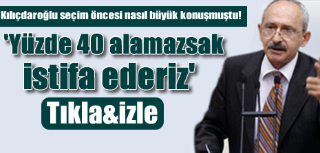 Seçimlerden önce Bursa'da Olay TV'ye konuşan CHP lider yüzde 40 oy almazsam istifa ederim demişti. Kılıçdaroğlu, seçim öncesinde Olay TV'de katıldığı canlı yayında, seçimde hedeflerinin yüzde 40 olduğunu belirtiyor ve bu hedefi tutturamamaları halinde yönetim olarak istifa edeceklerini açıklıyor. Kılıçdaroğlu'nun konuşmasında kendilerinin çıkar ve koltuk peşinde olmadığına da dikkat çekerek, şunları söylüyor;