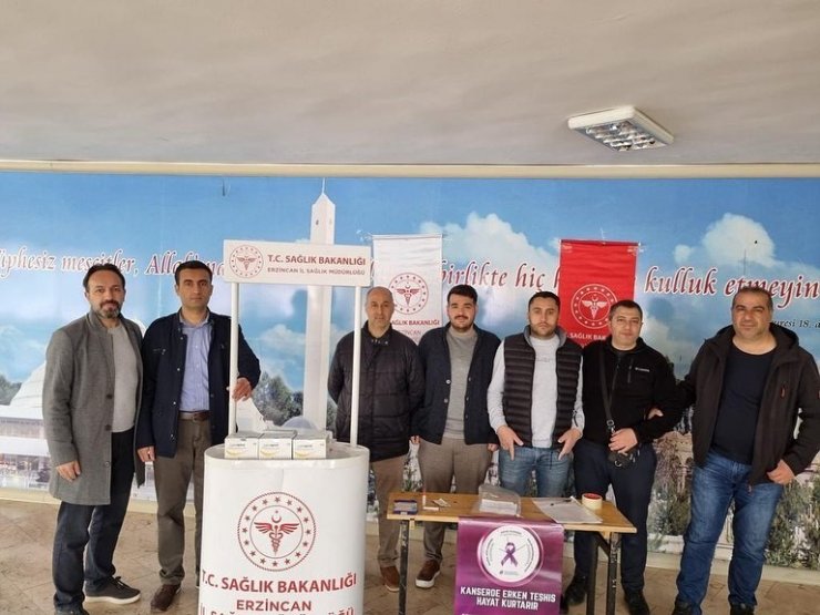 Bu çerçevesinde Erzincan İl Sağlık Müdürlüğü Halk Sağlığı Hizmetleri Başkanlığı Sağlıklı Hayat Merkezi Kanser Erken Teşhis, Tarama ve Eğitim Birimi personelleri tarafından Erzincan Terzibaba Camii ve Cami-i Kebir de namaz çıkışında 50-70 yaş arası vatandaşlara Kolorektal Kanser taraması çerçevesinde Gaitada Gizli Kan kiti dağıtımı gerçekleştirilerek, etkinliğe başvuranlara kolon kanseri erken teşhisinin önemi hakkında bilgi verildi.