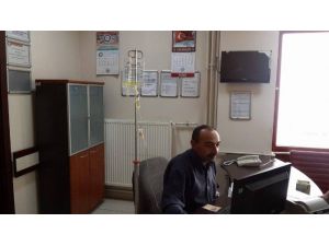 Aşkale Devlet Hastanesi'nde görevli memur Bayram Baksi, kolunda serumuyla görevinin başında gelen hastalara hizmet veriyor. Mide bulantısı ve karın ağrısı nedeniyle serum takılan Baksi, sabah saatlerinden itibaren görevini aksatmadan hastaların sıkıntı yaşamaması için istirahat etmek yerine görevine devam etti. Hastaneye gelen ilçe sakinleri, kolunda serum takılı olarak hizmet veren Bayram Baksi'ye teşekkür ettiler.