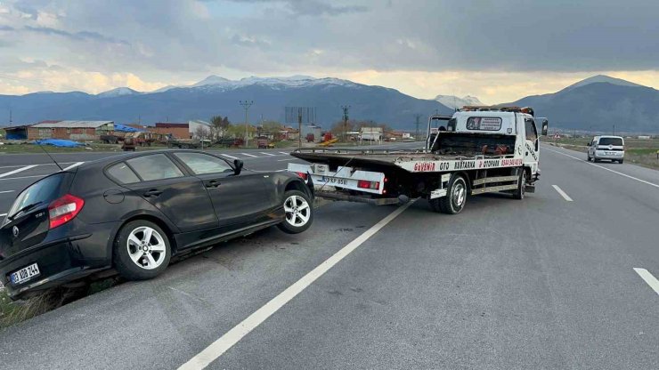 Afyonkarahisar'da bir anda önüne çıkan köpeğe çarpmamak için manevra yapan sürücünün kullandığı otomobil kontrolden çıkarak orta refüje girdi.