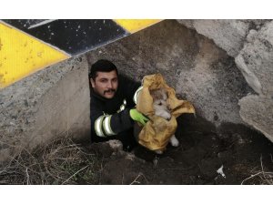 Erzincan'da Vasgirt Deresi üzerinde bulunan köprünün ayakları altında mahsur kalan 2 tane yavru köpek itfaiye ekiplerinin çalışması sonucu kurtarıldı.