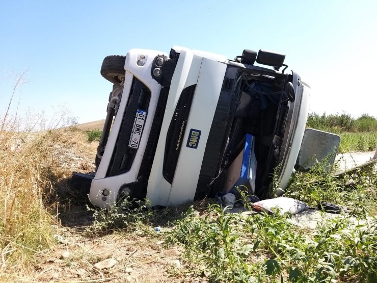 Kaza, Kozan Organize Sanayi Bölgesi Kemer Mahallesi yolu üzerinde meydana geldi. Edinilen bilgilere göre; İbrahim Durna yönetimindeki 01 BMC 70 plakalı tır seyir halinde iken yoldan çıkarak şarampole devrildi. Kazada sürücü İbrahim Durna yaralandı. Kazayı gören vatandaşlar, hemen 112 Acil Servis ekiplerine haber verdi. Olay yerine gelen sağlık ekipleri, yaralıya ilk müdahaleyi yaptıktan sonra Kozan Devlet Hastanesi acil servisine kaldırdı.