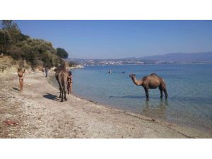 Türkiye'nin ilk tatil köylerinden biri olan Kuşadası'ndaki eski Fransız Tatil Köyü'nün (Club Med) kapanmasının ardından bir dönem çıplaklar kampı olarak ün yapan Arslanburnu Koyu'nda şimdi develer denize giriyor.