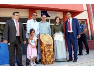 8. sınıfı birincilikte bitiren Elif Özden, okulun yaş kütüğüne plaket çaktı.